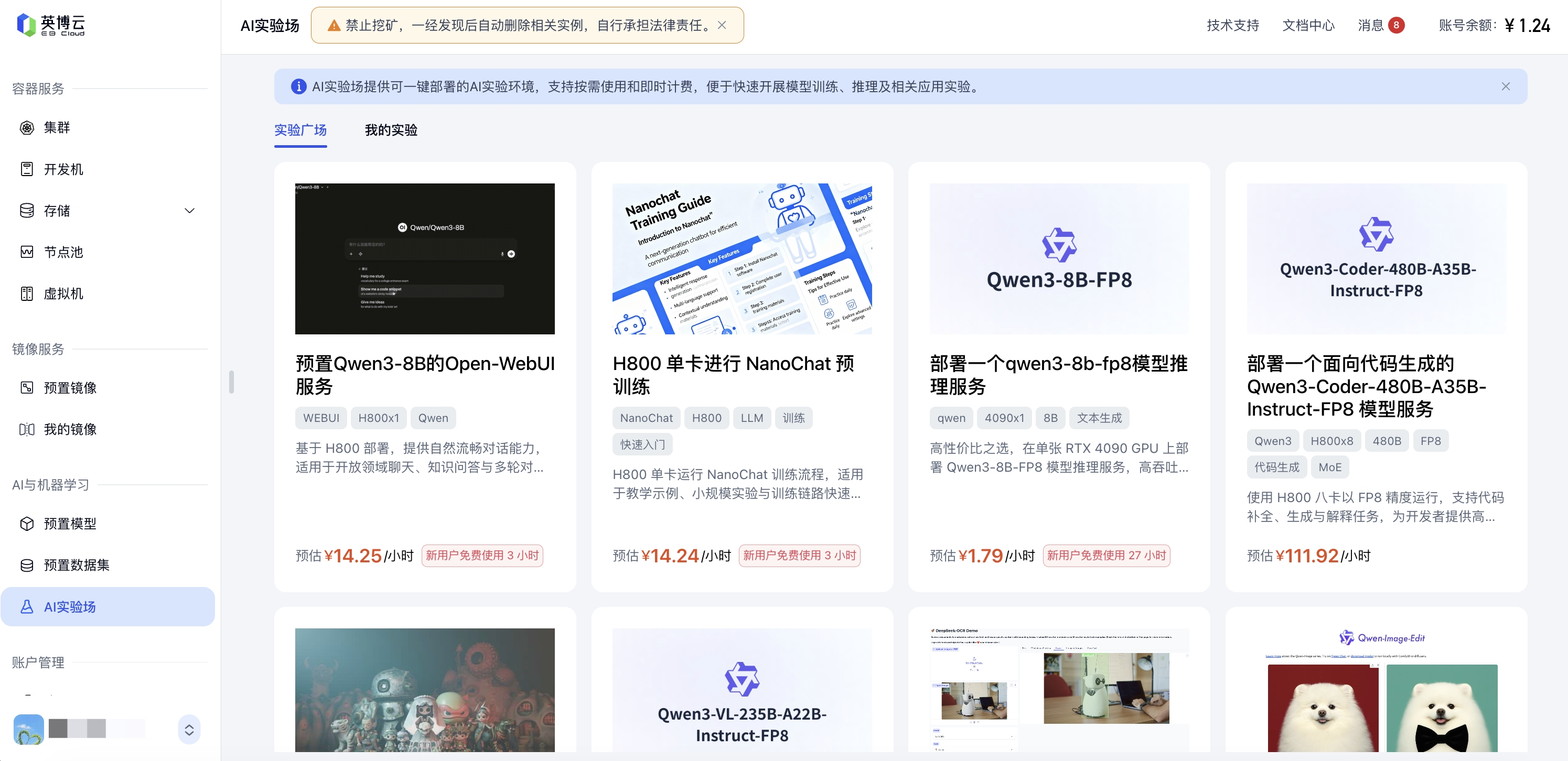 AI 实验场支持按需启用与即时计费,用户仅需为实际消耗的计算、存储和网络资源付费。系统自动为实验创建所需的容器、存储卷和访问入口,并提供图形化界面与 API 访问方式,方便用户直接使用实验环境或进行二次开发。