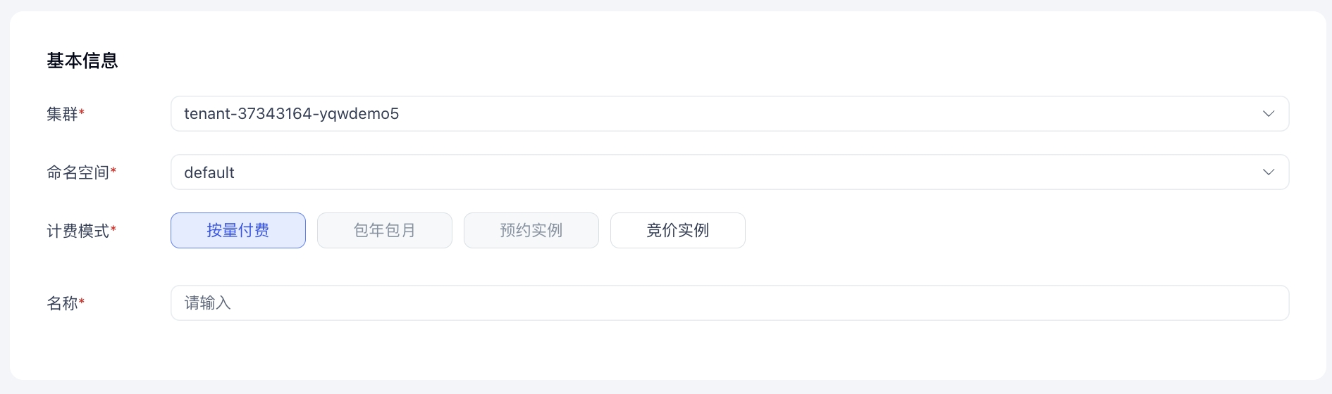 | 计费模式 | 选择按量付费模式 |