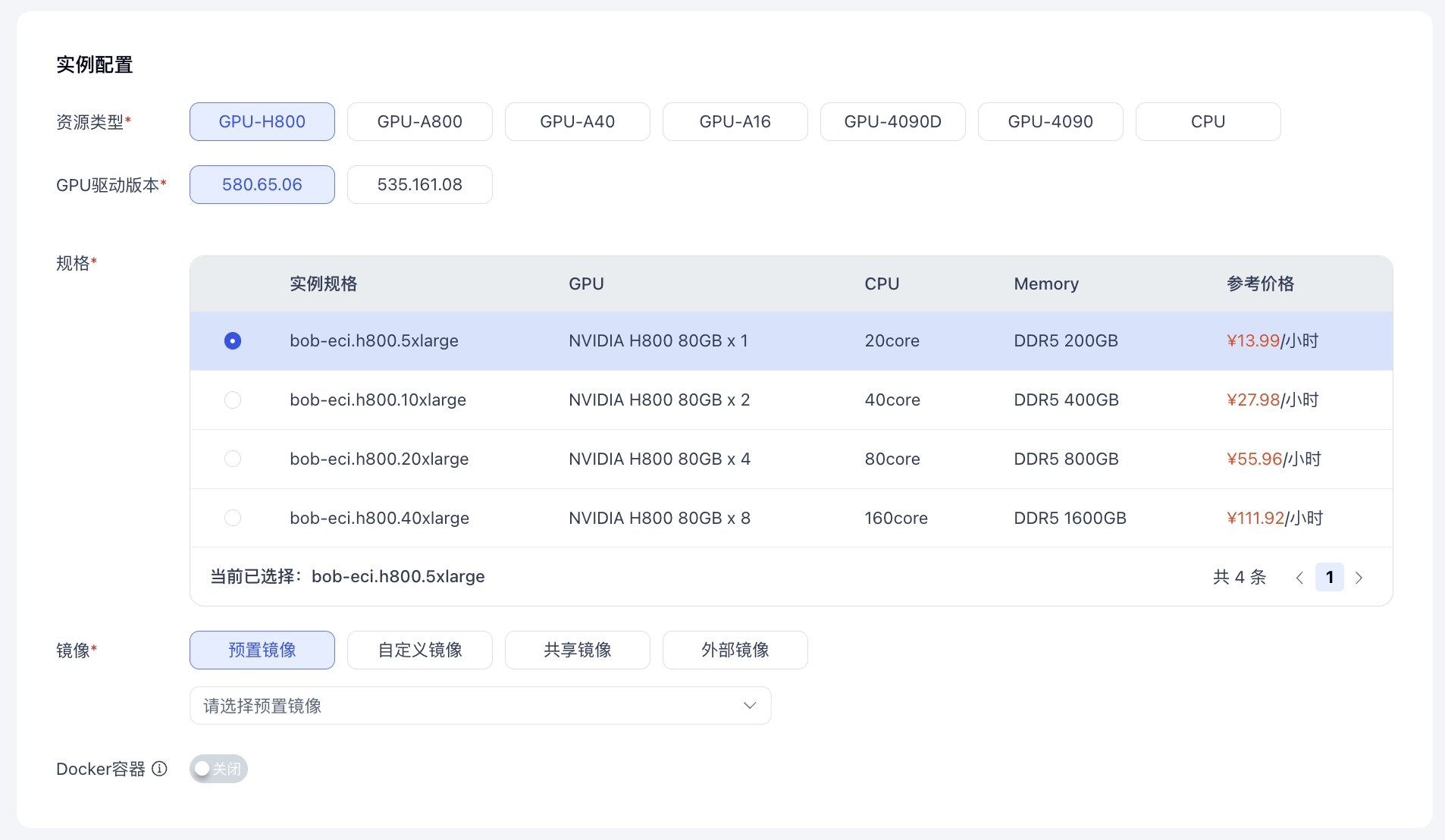 | GPU驱动版本 | 选择您需要的GPU驱动版本,不同的驱动版本匹配的CUDA镜像版本不同 |