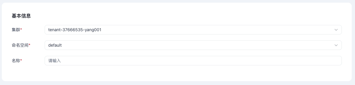 | 集群 | 选择开发机归属的的集群,选择集群后必须选择命名空间 |