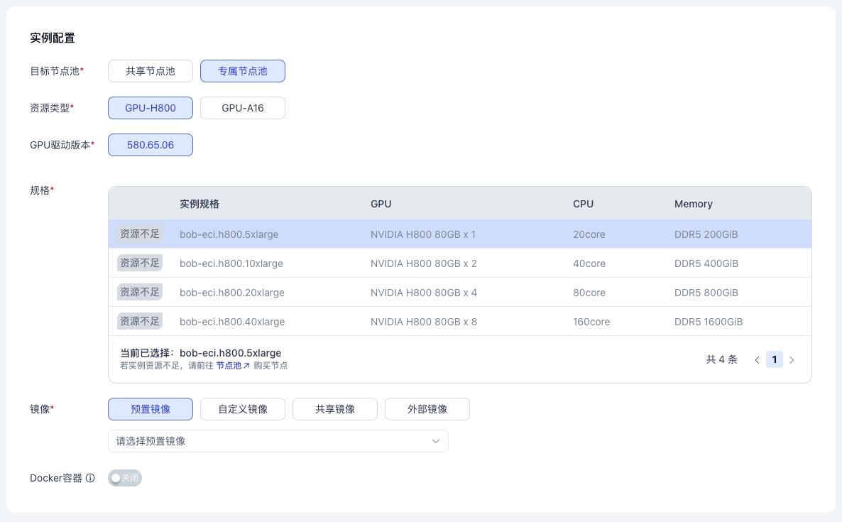| 规格 | 选择不同GPU或CPU资源的规格 |