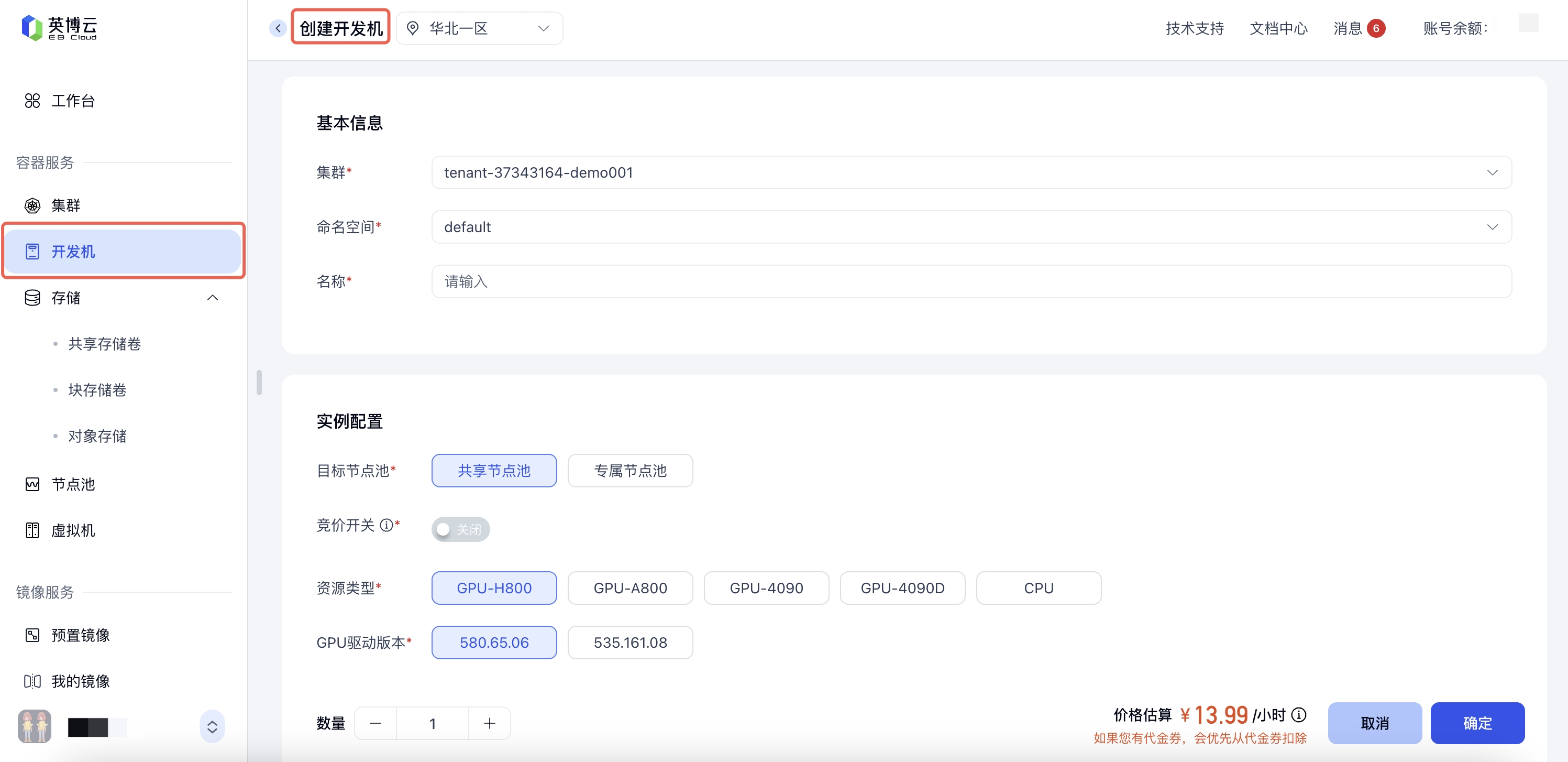 本文旨在帮助您了解英博云GPU容器服务(Ebcloud Kubernetes Service,简称 EKS)的基本使用流程,快速上手GPU容器服务创建和使用第一个开发机,开启您的AI探索之旅。
